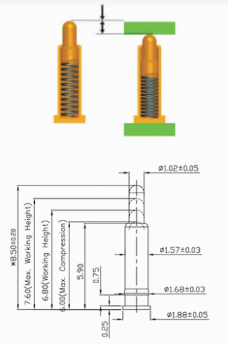 Базовая рабочая высота Pogo Pin (подпружиненный разъем):
