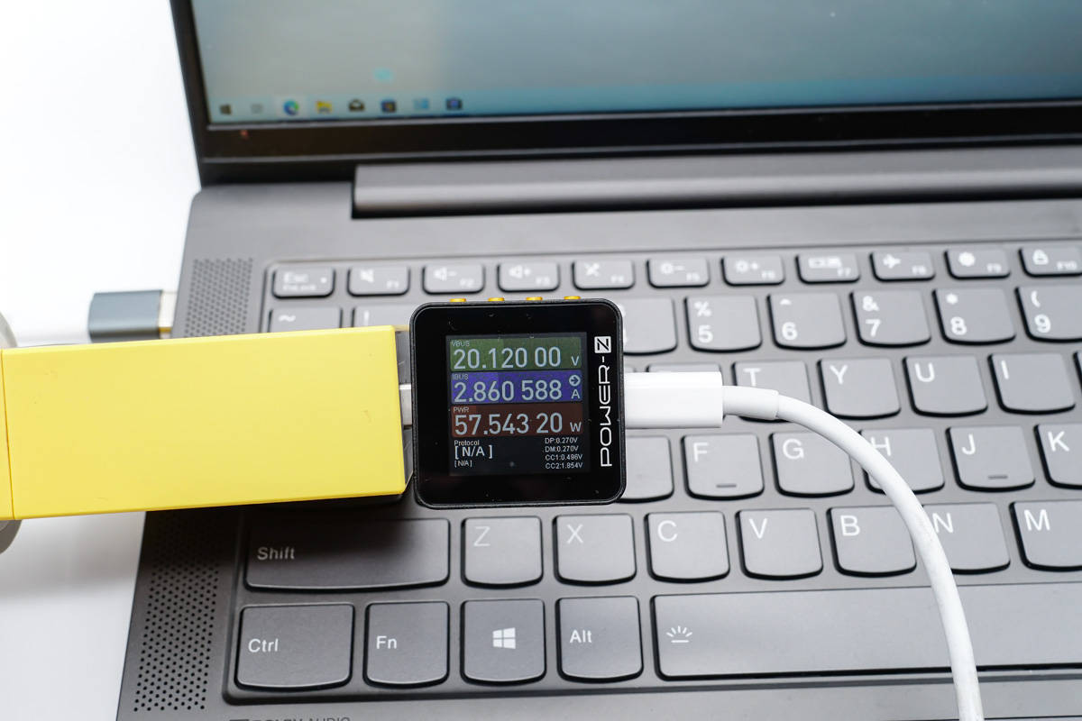 Прежде всего, давайте посмотрим на быструю зарядку. Используйте зарядное устройство на 100 Вт с магнитным адаптером с прямой головкой, чтобы зарядить ноутбук мощностью 20,12 В 2,86A 57,54 Вт.
