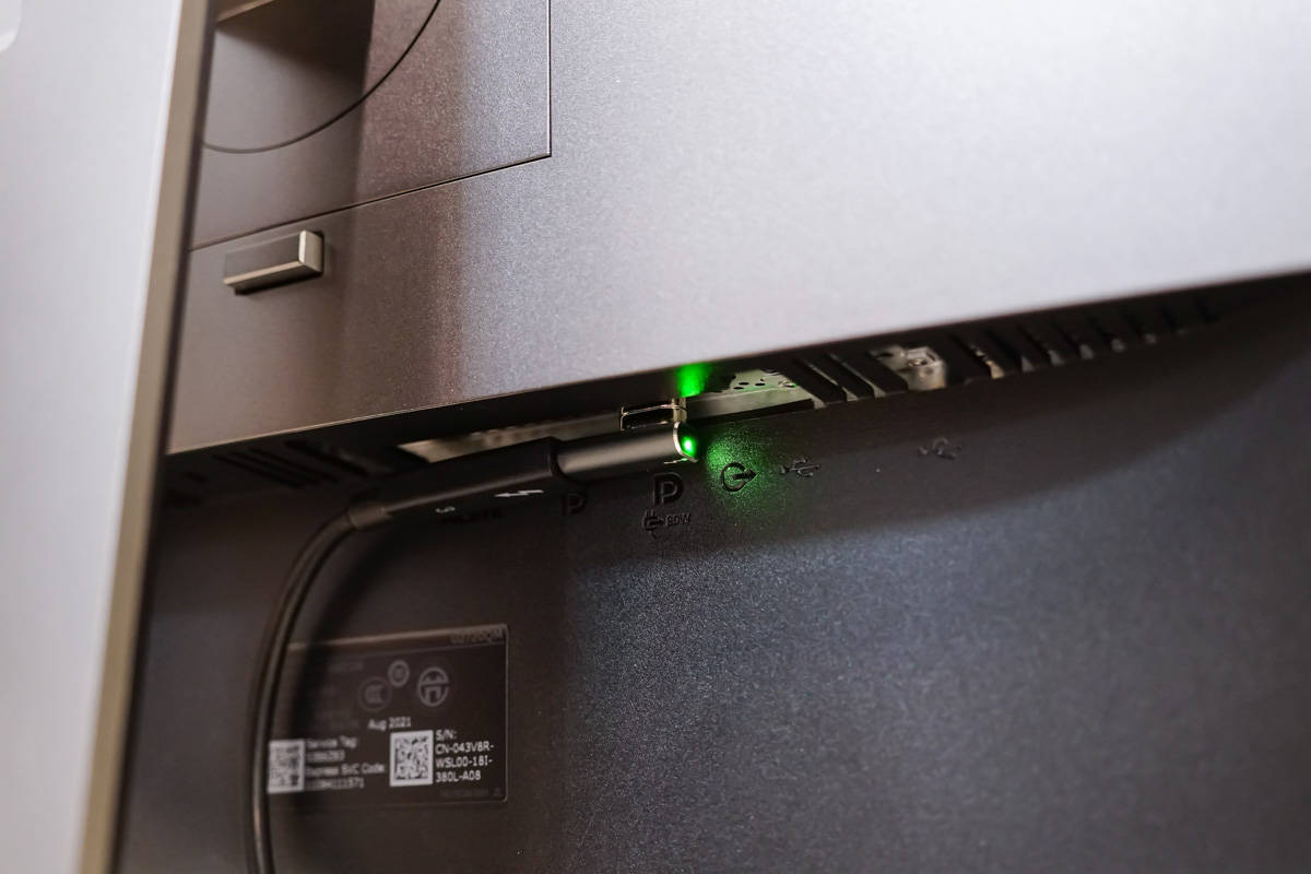 Далее смотрим на передачу видео, подключаем кабель данных Thunderbolt 3 к монитору Dell U2720QM 4K через переходник.