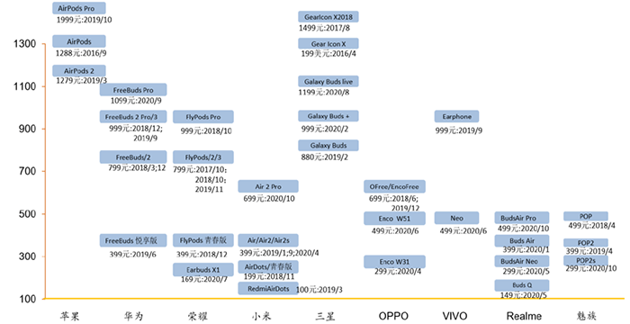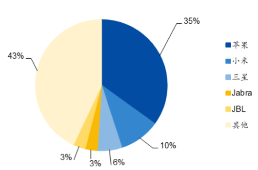 С точки зрения распространения бренда, рынок гарнитур TWS первым взорвал Apple. После нескольких лет разработки его продукт AirPods занял очень большую долю рынка среднего и высокого класса. Согласно данным анализа от Counterpoint, по состоянию на второй квартал 2020 года в тройку лидеров рынка TWS входят Apple (35 процентов), Xiaomi (10 процентов) и Samsung (6 процентов). рынок.