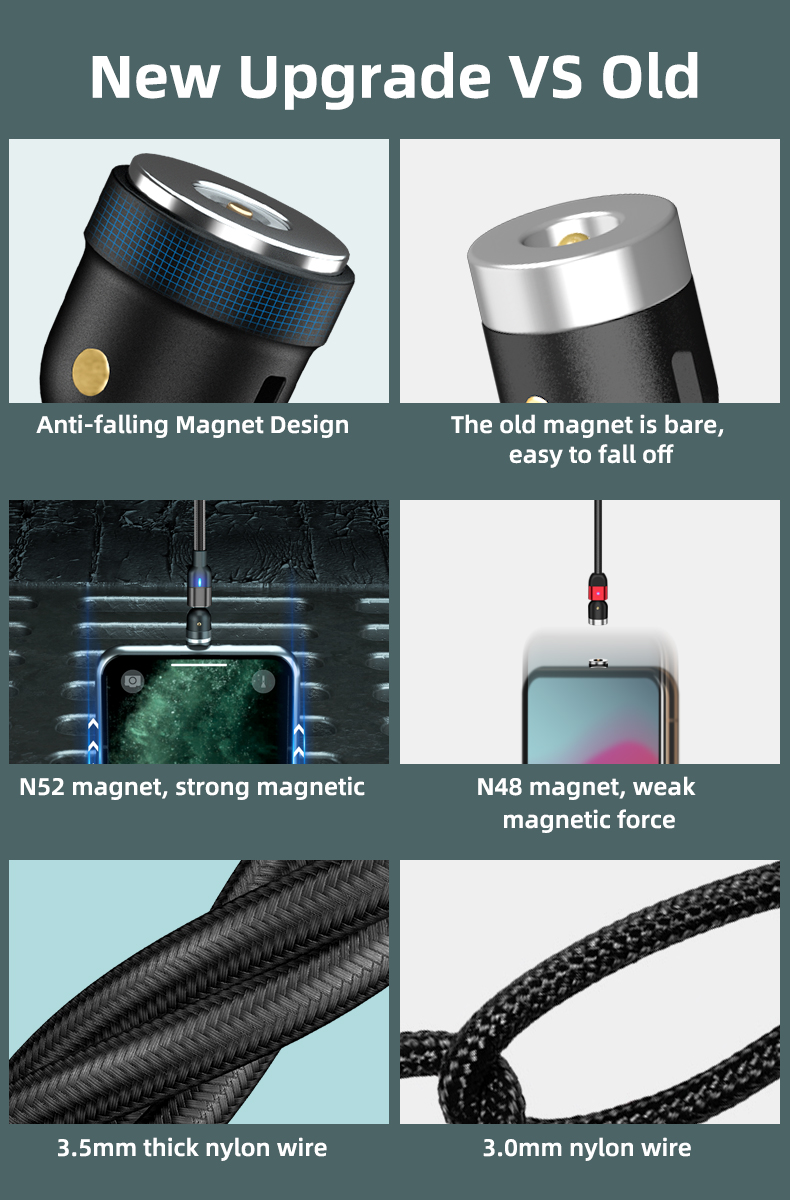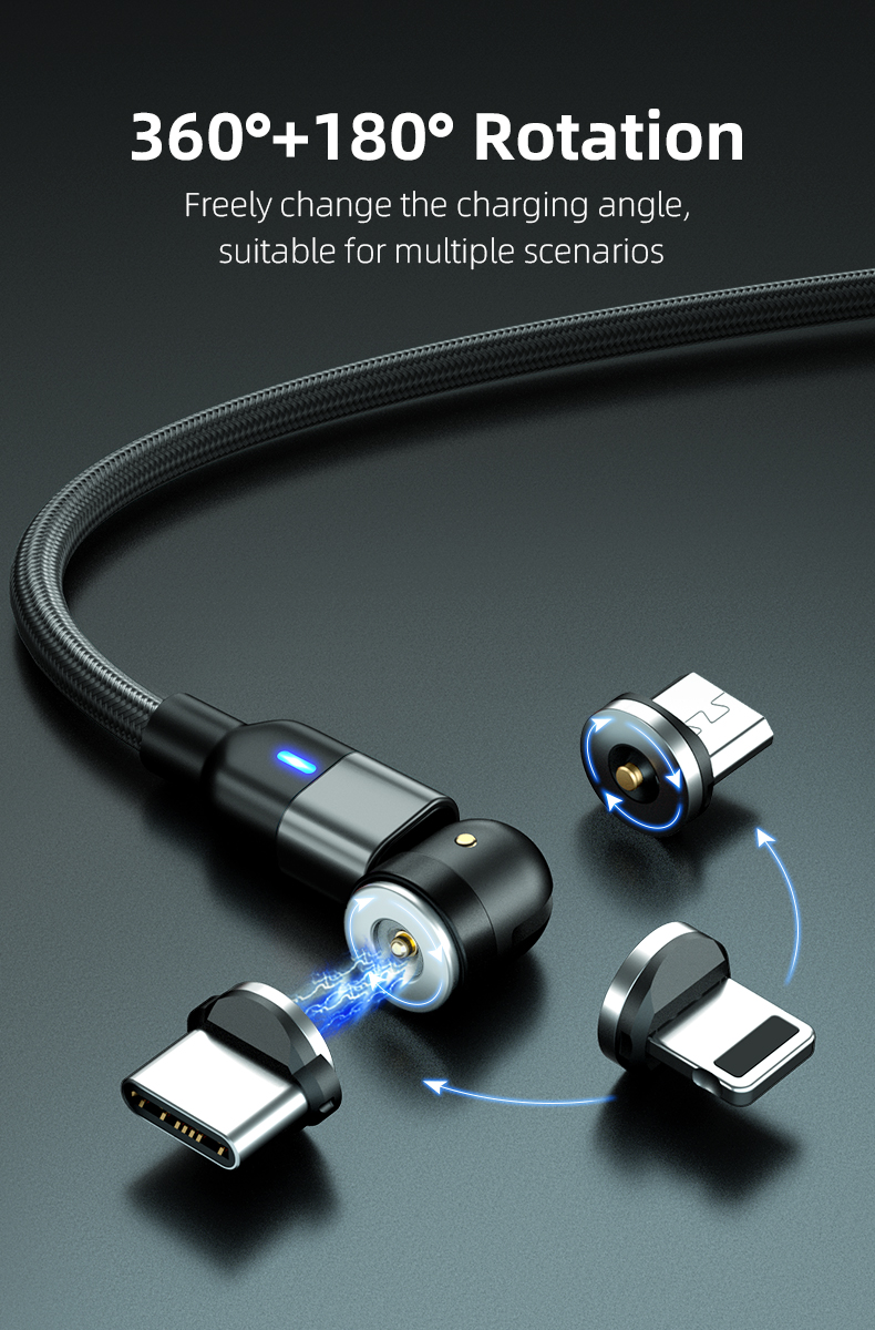 540-Вращение градусов 3 в 1 Магнитные кабели Pogo Pin для быстрой зарядки